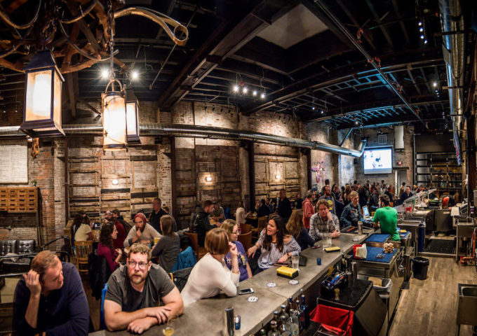 Fortunately, the puffs were so light they’d have floated away were they not anchored by a web of blistered Gruyere, and the various pickles were rendered with uncommon panache. Engorged sweet-and-sour cherry tomatoes burst on shards of Metropolitan sourdough crostini in one variation that cost only $4, while lemony artichokes flecked with black truffle were costlier at $10, but so savory you could see why Village Whiskey runs through 100 pounds of them per week.